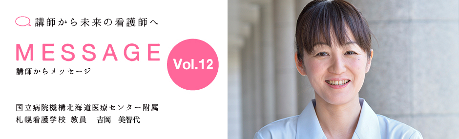 看護師は、専門的な知識・技術・態度をもってその人らしく生活していけるように支援し調整する仕事です。3年間の学生の生活のなかで多くの人々と関わり、その中で喜びや達成感を感じることもあり、逆に悩み苦しむこともありますが、それぞれの時間は皆さんの自信・誇りとなり糧となり一回りも二回りも成長できます。